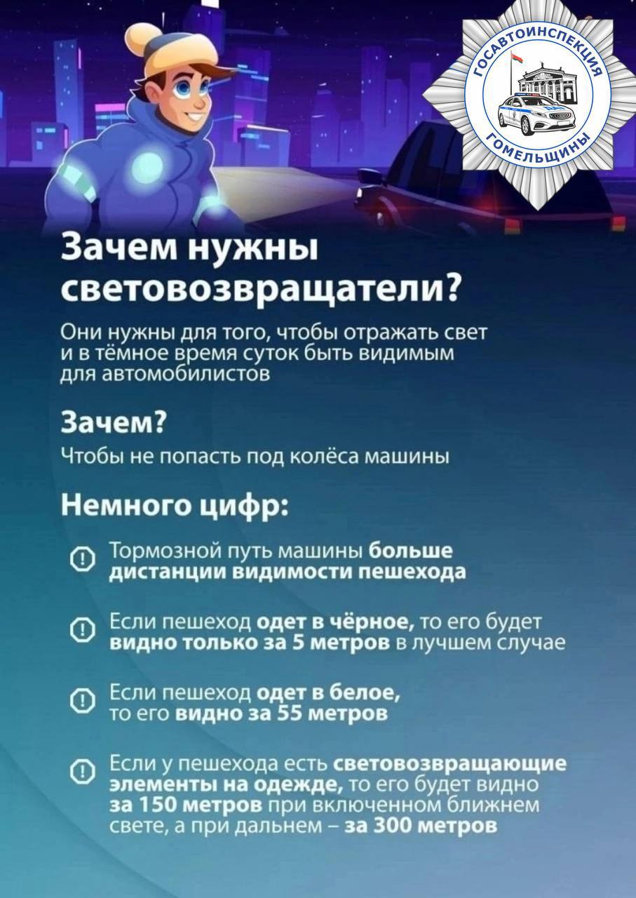 СВЕТОВОЗВРАЩАЮЩИМ ЭЛЕМЕНТАМ 🚶♂️ и велосипедисты 🚴 в условиях плохой или недостаточной видимости обеспечены безопасностью на дороге.