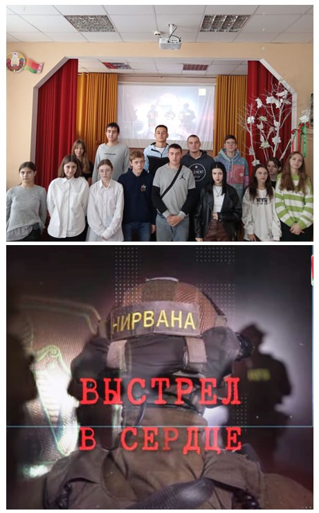 С целью военно-патриотического воспитания обучающихся и формирования гражданской позиции, донесения до них достоверной информации о специальных силовых подразделениях Комитета государственной безопасности Республики Беларусь, выполняющих боевые задачи в мирное время, 01.11.2023 года для учащихся старших классов ГУО «Средняя школа № 31 г. Гомеля» состоялся просмотр и обсуждение документального фильма «Нирвана. Выстрел в сердце». Содержание фильма вызвало заинтересованность у учащихся, после его просмотра состоялось коллективное живое обсуждение, где все присутствовавшие смогли высказать свое мнение и поделиться впечатлениями.