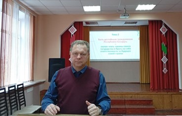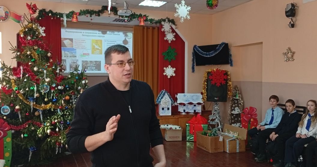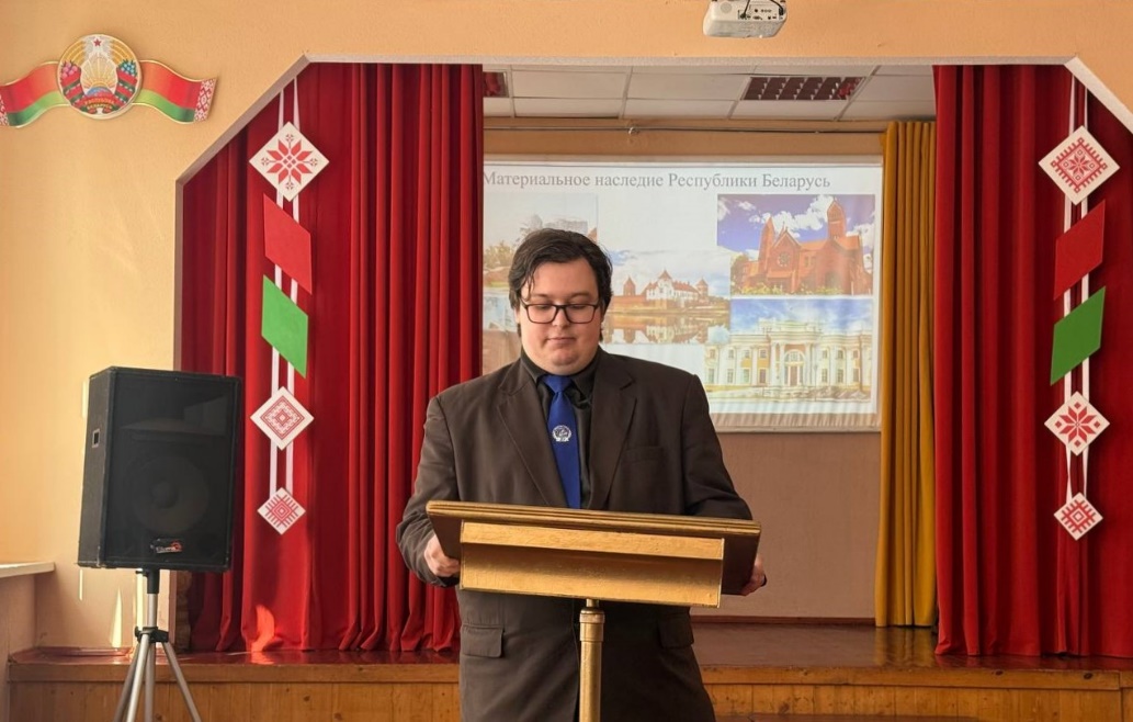 В информационном блоке ШАГ 1 «МЫ УЗНАЁМ», заведующий библиотекой Бугаев Виталий Дмитриевич актуализировал знания учащихся о значении и содержании понятий «духовность», «культура», «искусство», «образование»; о важности сохранения исторической памяти, о семейных ценностях белорусов, социальной ответственности.
