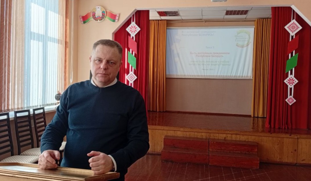 В информационном блоке ШАГ 1 «МЫ УЗНАЁМ», руководитель по военно-патриотическому воспитанию Титов Дмитрий Валерьевич с помощью тематической презентации, разработанной Академией образования, актуализировал знания учащихся о защите государственной границы Республики Беларусь, о Вооруженных Силах Беларуси как гаранте национальной безопасности страны; о военной службе как школе мужества; об учебных заведениях, готовящих военных специалистов; о роли военно-патриотических клубов в патриотическом воспитании молодежи.