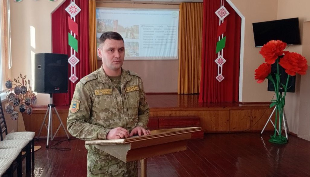 В рамках ШАГа 2 «МЫ РАССУЖДАЕМ» был организован диалог с приглашенным гостем – старшим офицером отдела боевой подготовки Гомельской пограничной группы майором Долбиком Алексеем Геннадьевичем.